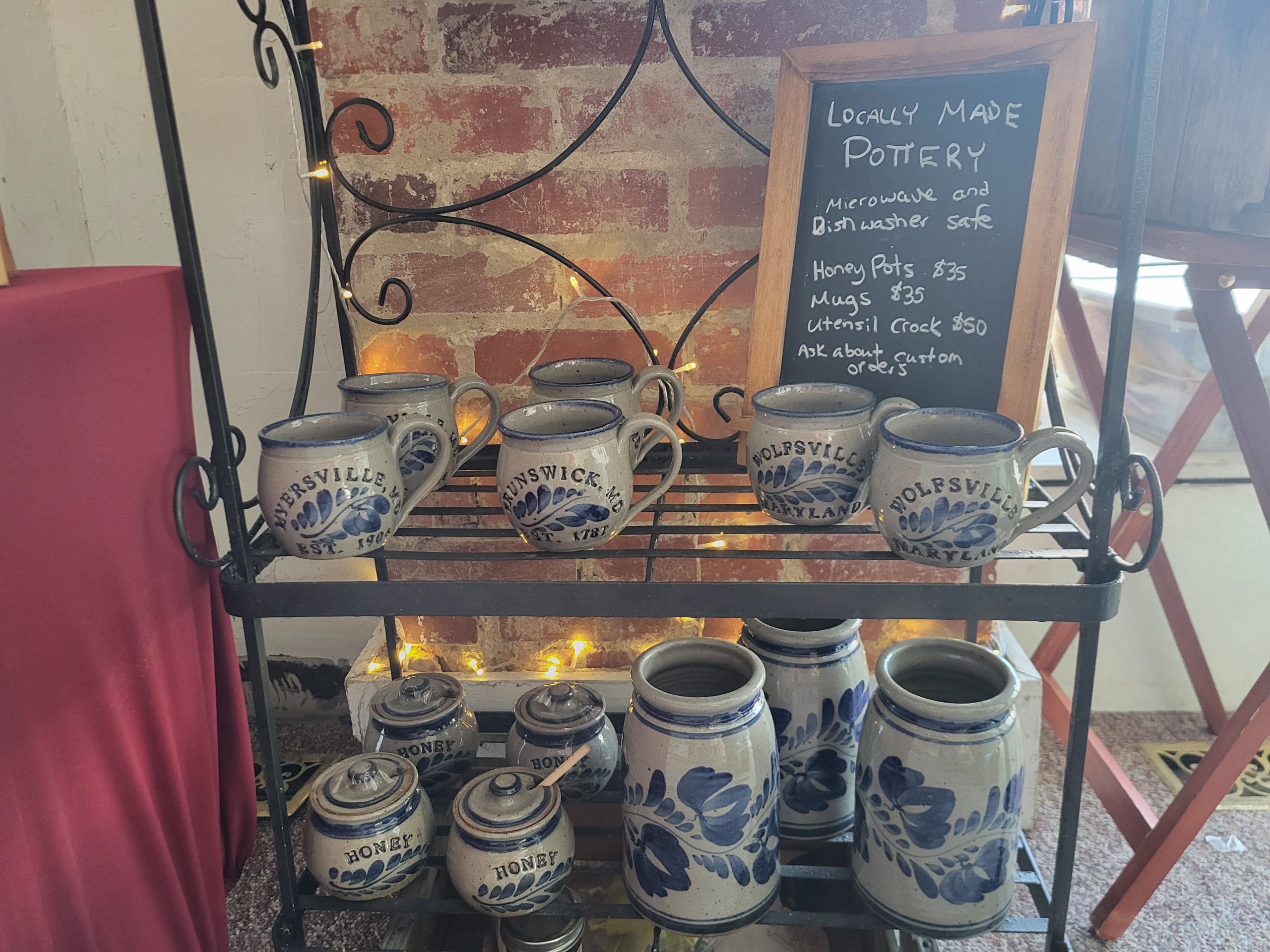 Attribute | Honey Pot with Dipper, Brunswick Mug, Mid-MD Farm Market Francine Mug, Middletown 1767 Mug, Middletown Barrel Mug, Myersville Mug, Wolfsville Mug, Utensil Crock |