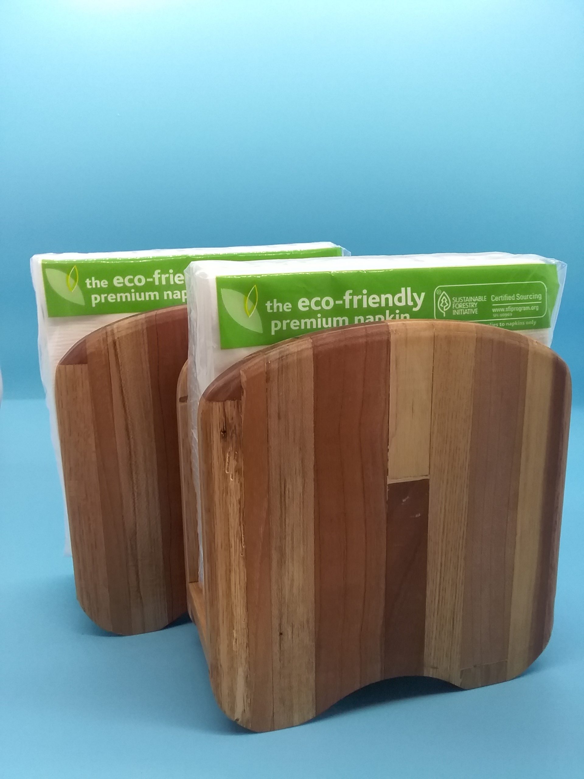 Each handmade napkin holder comes with a free package of cocktail napkins.